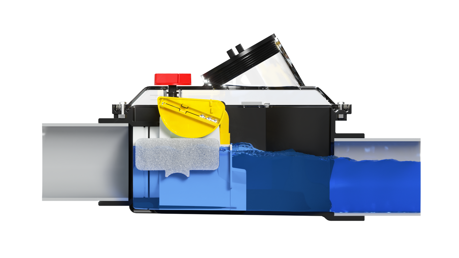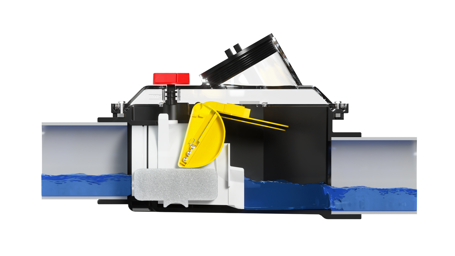 During a backup, Top-Check floats automatically rise and close the gate stopping the flow of sewage