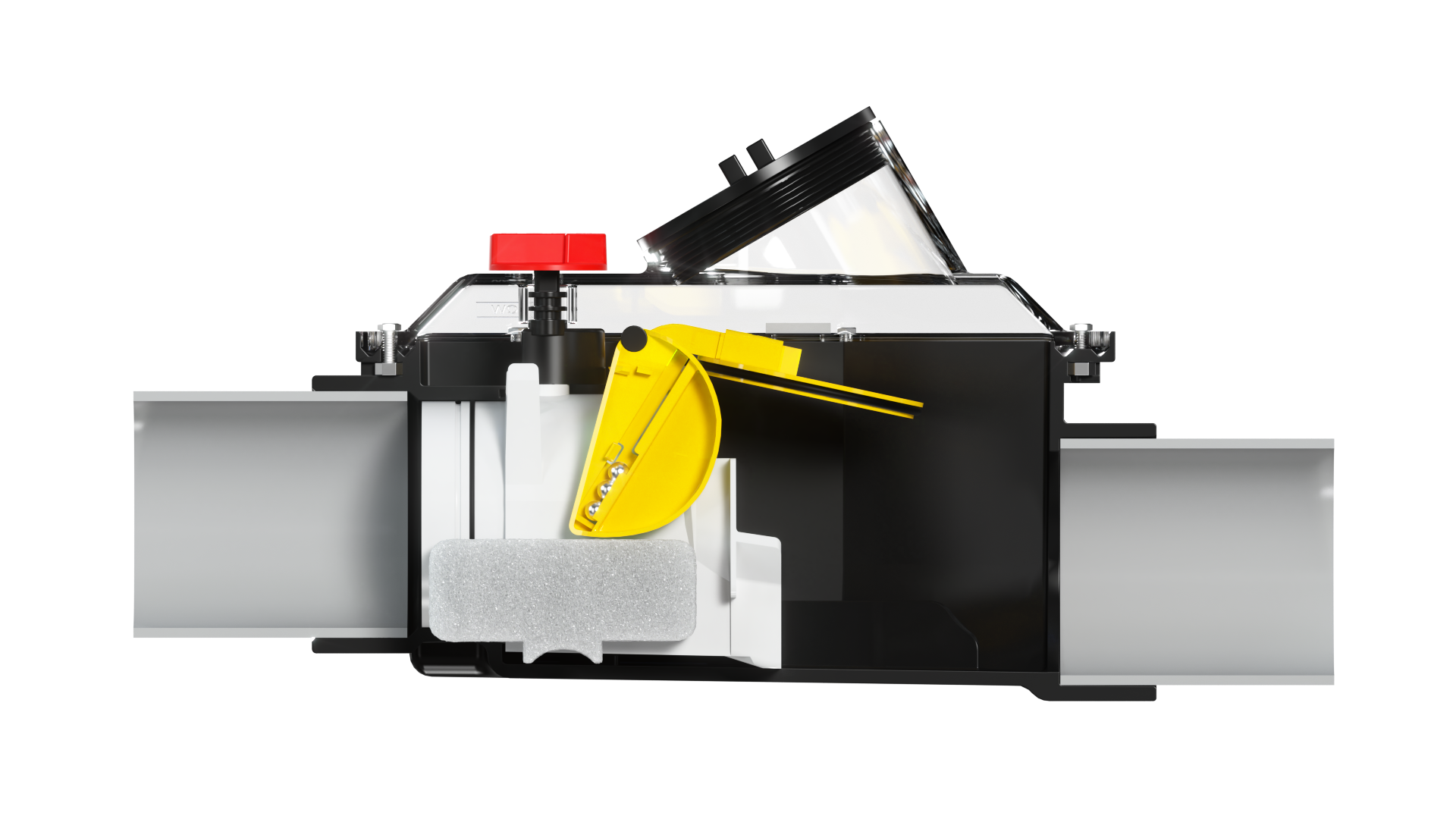 Mainline's Top-Check valve features a top suspended gate which stays forever clean. The clear lid & clenaout provide ease for visible inspections and sewer rodding. Manual sewer shut off provides owner option to manually close and flush their valve